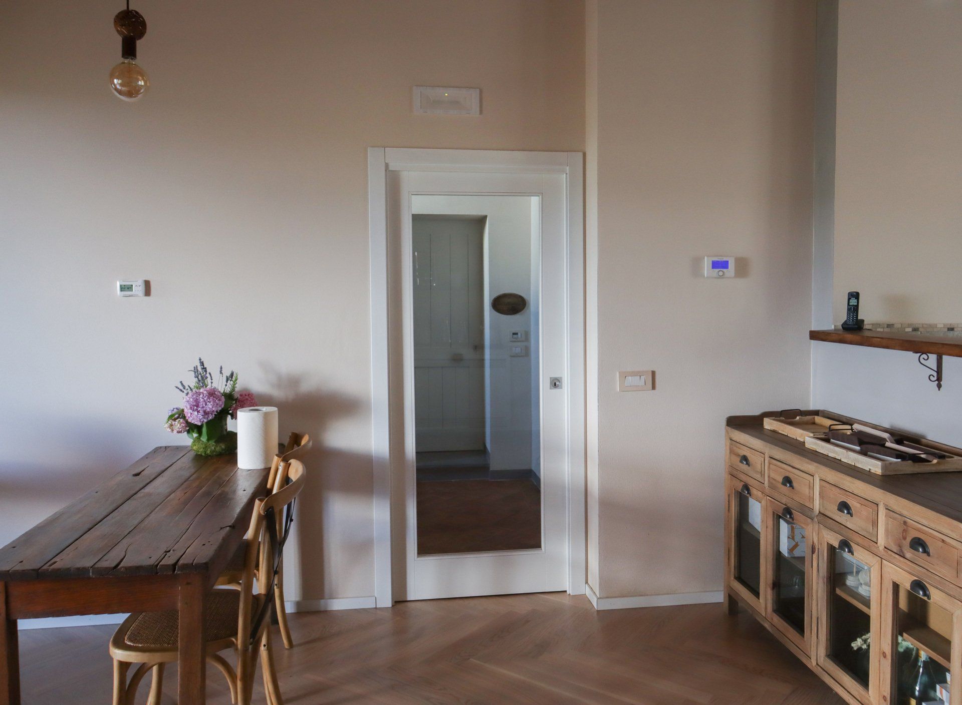 La produzione non si limita ai serramenti. Il laboratorio realizza anche complementi e porte interne moderne, progettate per adattarsi agli arredi contemporanei. Sono disponibili sistemi scorrevoli con guide a scomparsa, studiati per ottimizzare gli spazi e rendere più funzionali gli ambienti interni della casa. Ogni elemento viene rifinito con tecniche che esaltano venature e caratteristiche del legno, garantendo un risultato coerente e armonioso.